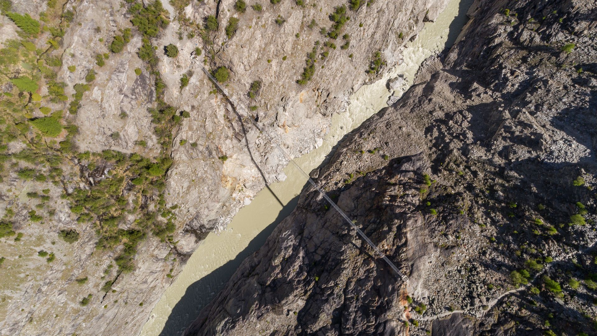 Le pont suspendu Belalp-Riederalp, en Suisse, mesure 124 mètres de long. Sa traversée fait partie des grandes attractions de la randonnée en Valais. En effet, le sentier passe à 80 mètres de hauteur directement devant le portail du majestueux grand glacier d'Aletsch, au-dessus des gorges de la Massa, et relie Belalp à Riederalp. La vue plongeante sur les gorges sauvages de la Massa vous garantit une belle poussée d'adrénaline et des sensations fortes.